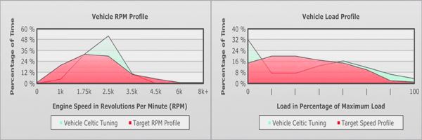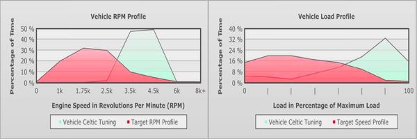 Los siguientes gráficos son datos reales de un Vw Caddy 1.9 TDi de 102 CV. Destacan un perfil de conductor típico que experimentan muchas flotas. La recalibración ecológica de Celtic Tuning permite a los gestores de flotas controlar el comportamiento del conductor, garantizando la protección del vehículo, un mayor ahorro de combustible y una reducción de las emisiones de CO2.